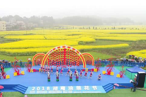 2018年湖南首届油菜花节召开 几十万亩花海春色撩人